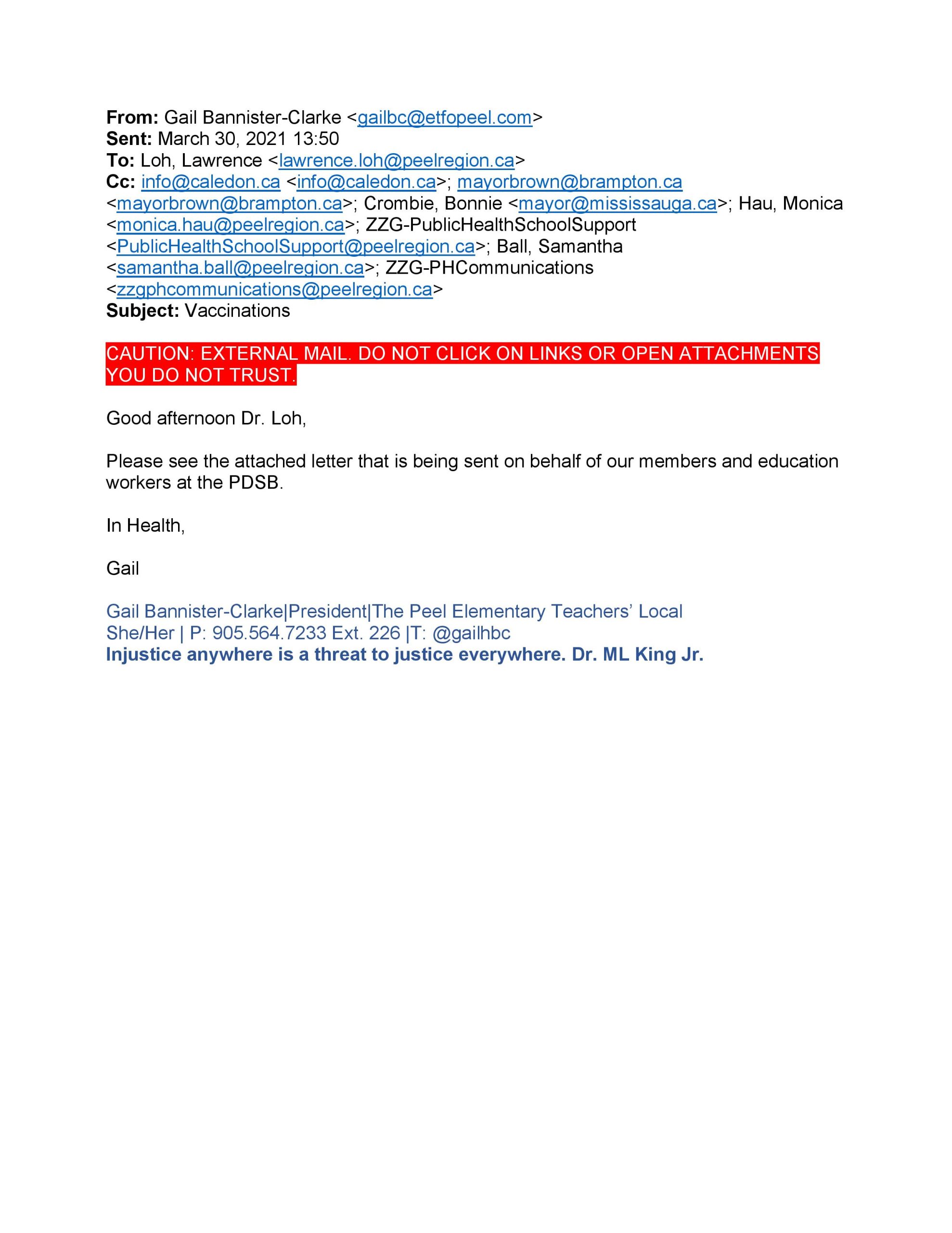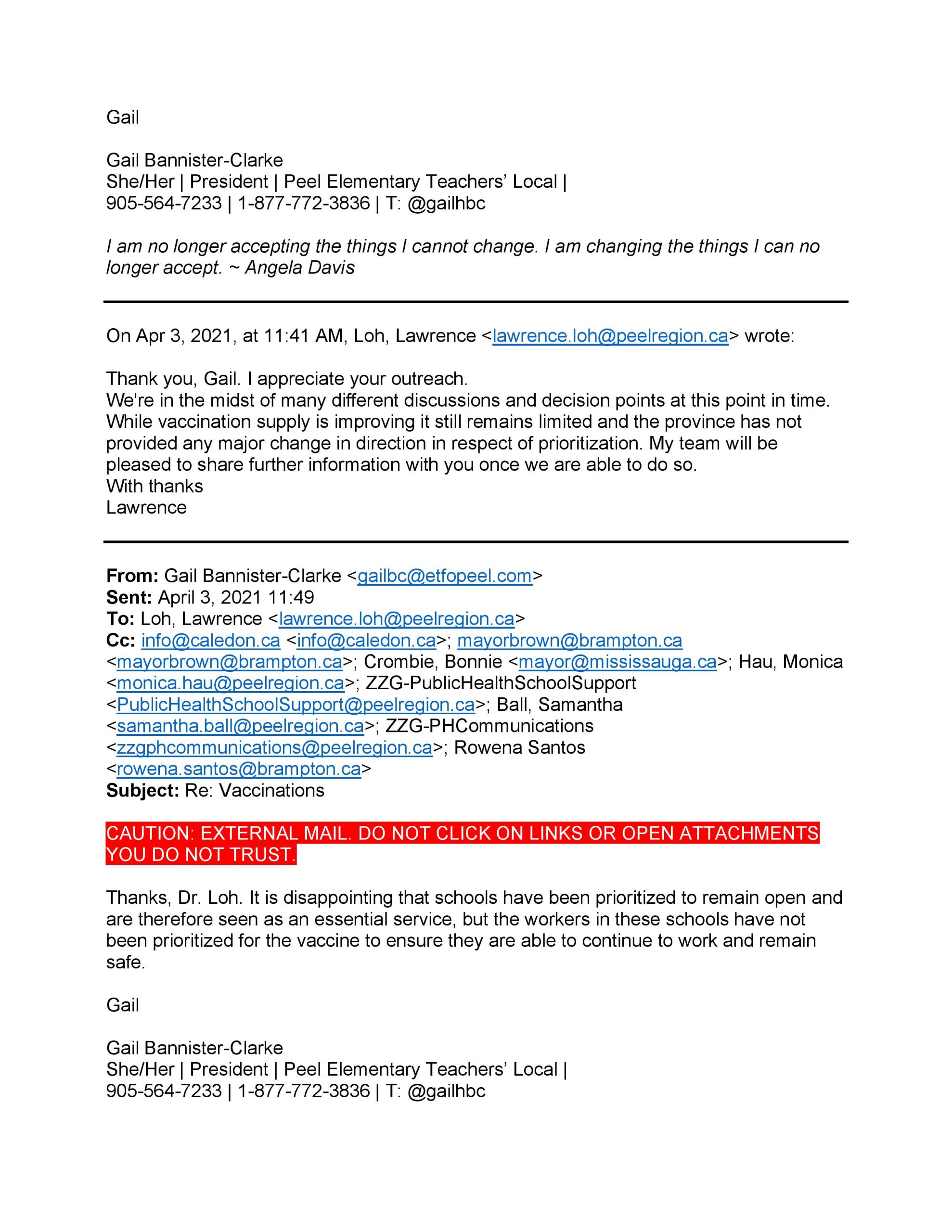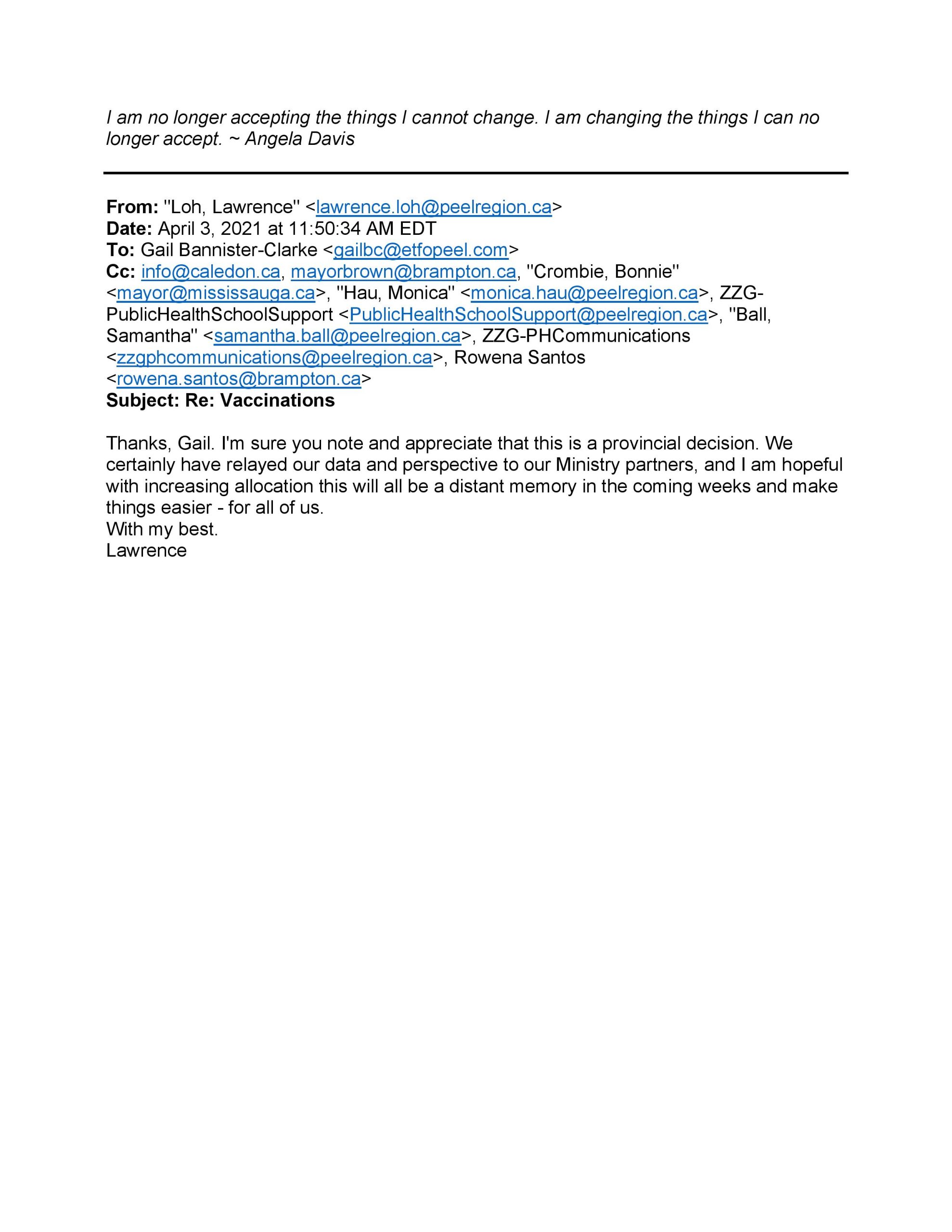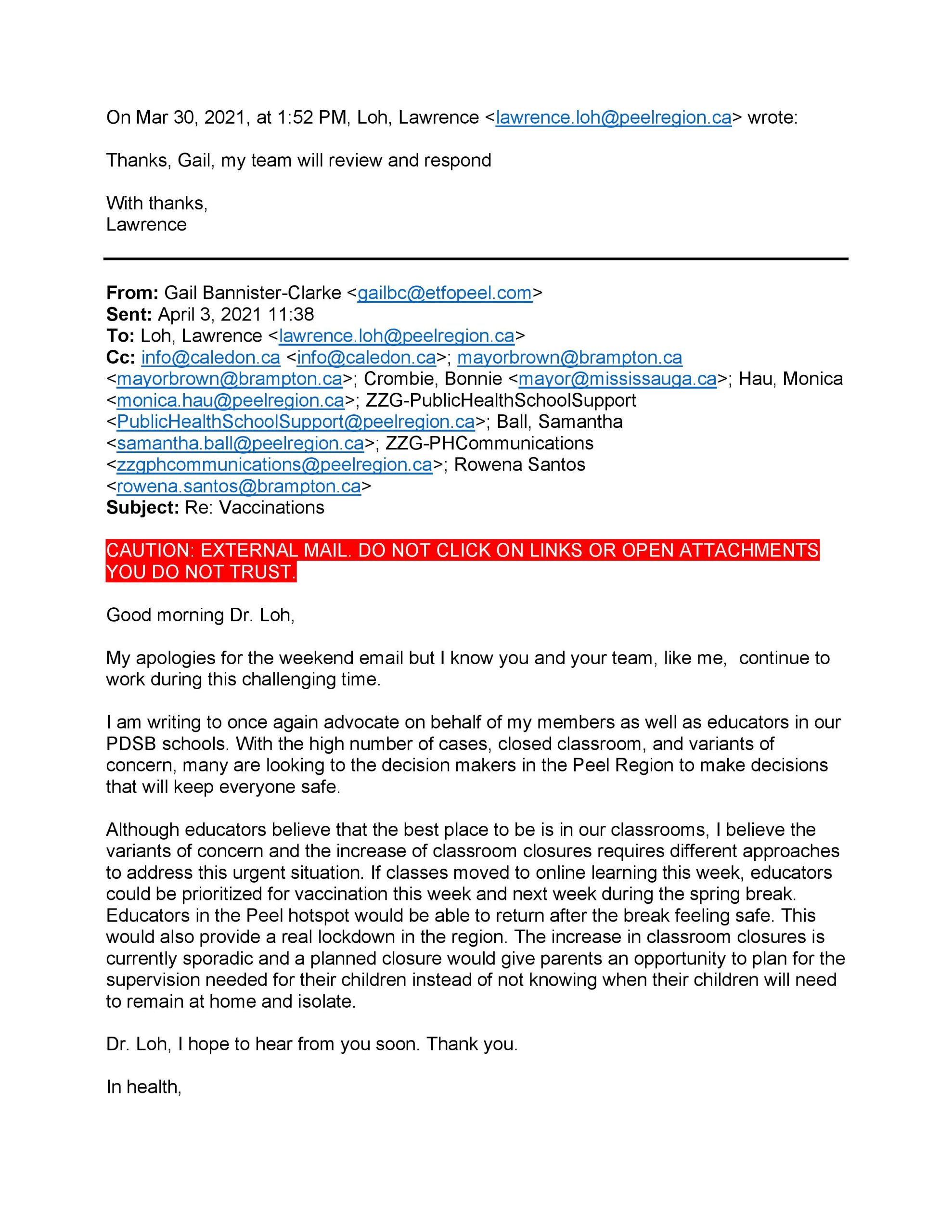Communication with Mayor Patrick Brown and Dr. Loh at PPH