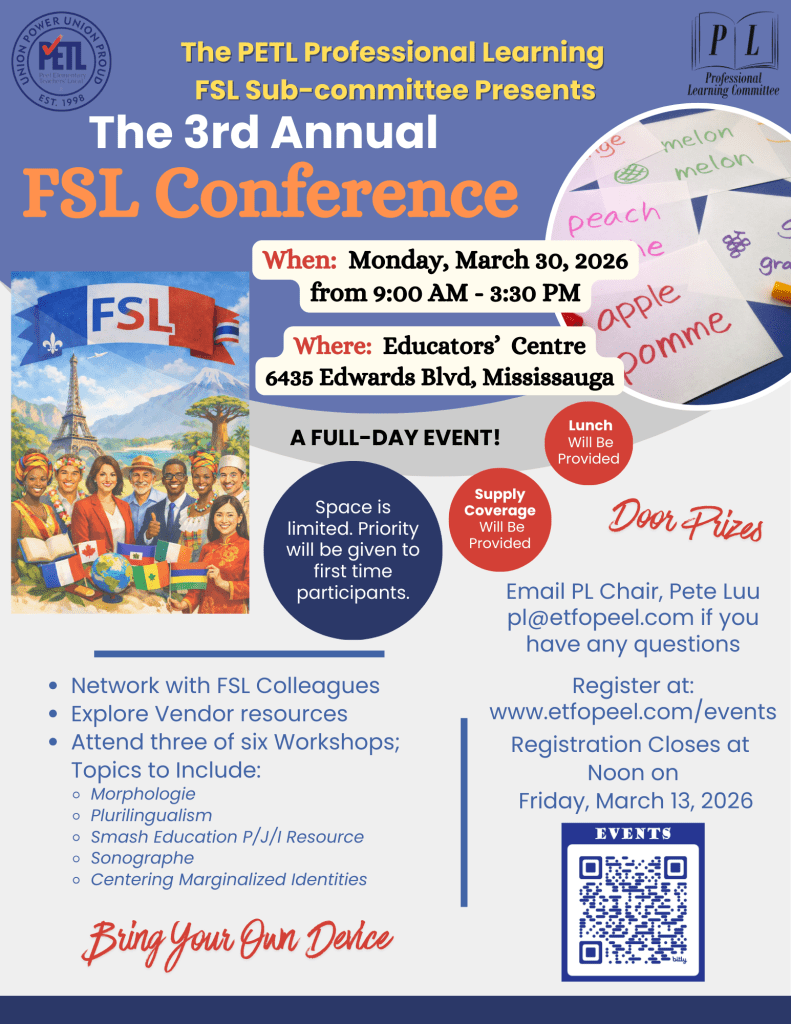 Arrive between 8:30 AM and 9:00 AM, and join the PL FSL Sub-committee for its 3rd Annual FSL Conference. Supply coverage will be provided. Lunch will be provided. Priority will be given for first time attendees.