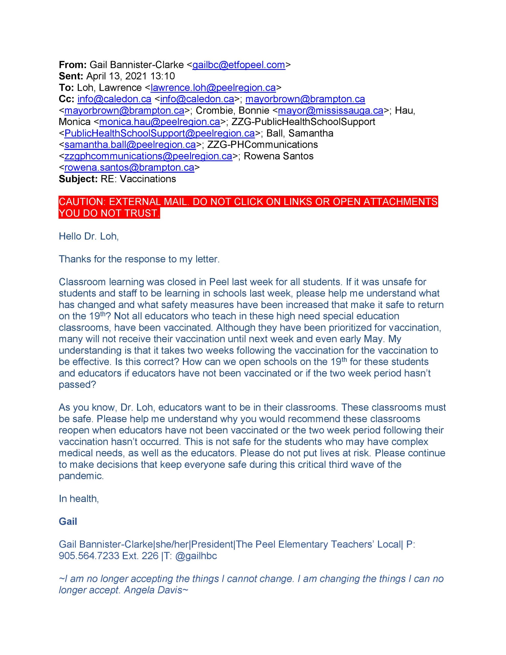 Response from Dr. Loh to PETL Letters dated March 30, 2021 and April 3, 2021